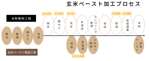 玄米を乾燥、製粉せず、水浸直後に直接微粉砕する独自製法を採用。