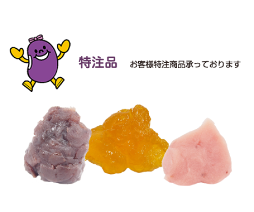 お客様のご要望に合わせて【特注品】の製造を行っております。ご希望の味、物性、糖度、産地を謳った原材料を使いたいなどなど、お客様だけのオリジナル商品をおつくりいたします。