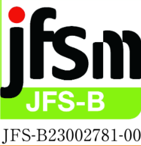当社は、食品の安全管理体制を強化するため、Japan Food Safety Management Association が策定した食品安全マネジメント規格 JFS-B規格を取得しています。