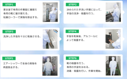 また、異物混入防止対策として、工場内の整理整頓、入室時の粘着ローラーやエアーシャワーの実施に努めています。
