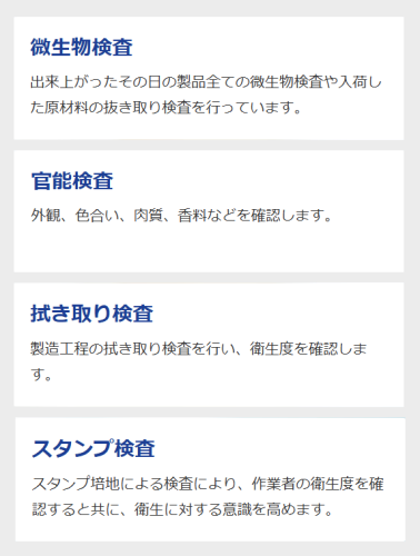 項目(微生物検査・官能検査・抜き取り検査・スタンプ検査)